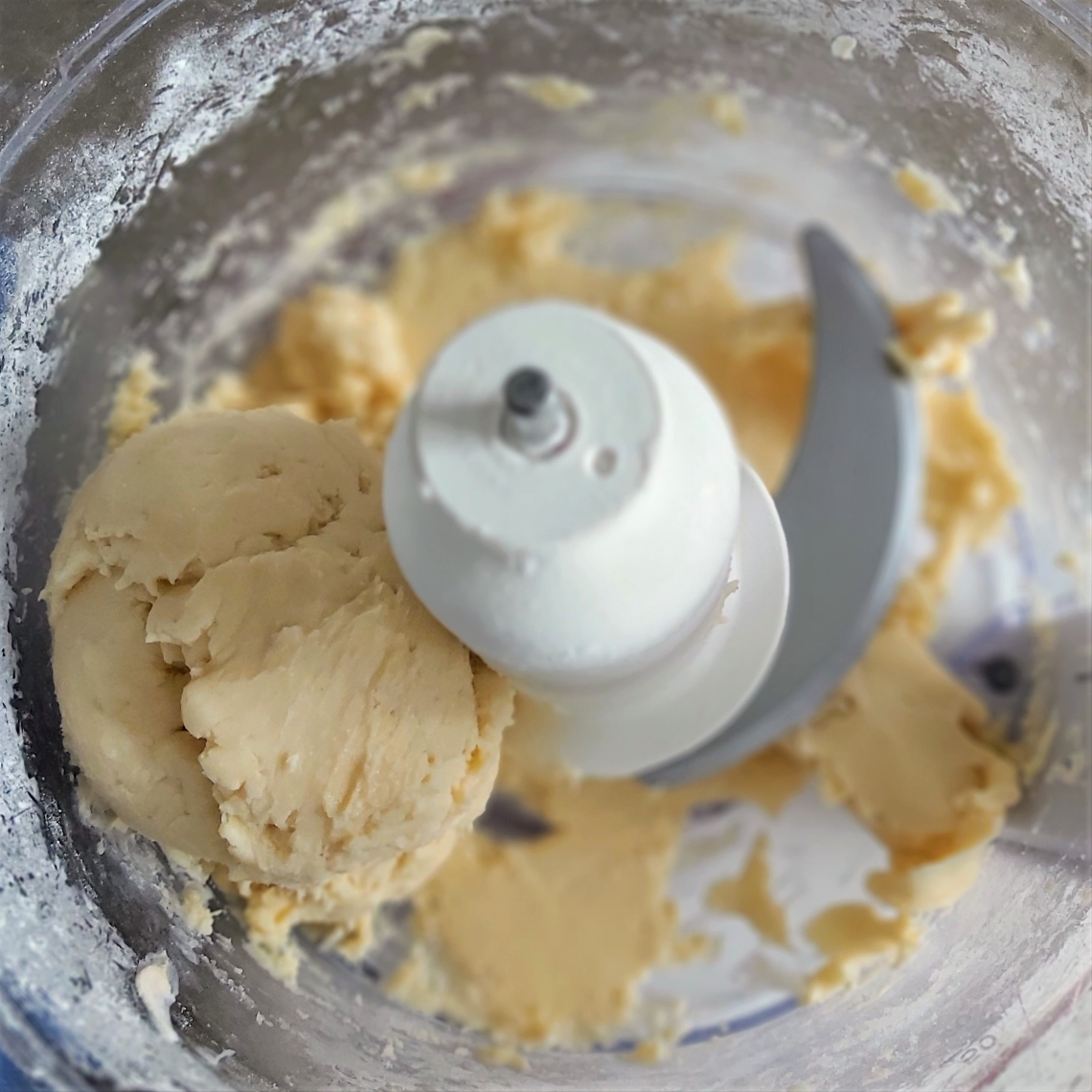 - Pulse the butter/margarine, flour, salt, xanthan gum, and if using, sugar, together in a food processor, or rub together with your fingers, to make breadcrumbs.