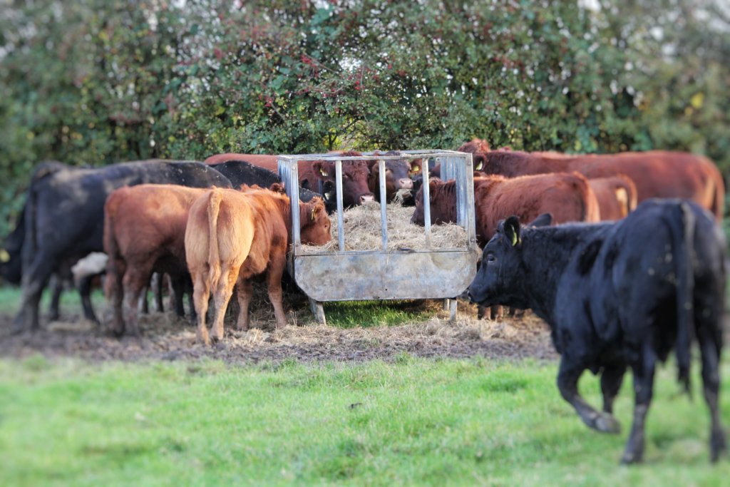 If your land is dry enough, so you don’t cause poaching (where the grass cover turns to sloppy mud, causing soil compaction and damage to next year’s grass growth, as well as some soil to run off into the watercourses), then out-wintering can be really beneficial for the cattle, and save a lot of money on bedding materials!